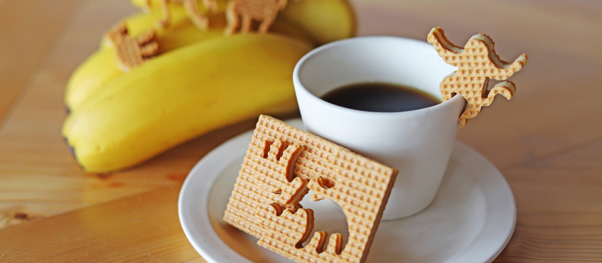 台湾産の山岳バナナは、深い甘みの中にあるほのかな酸味と豊かな香りが特徴です。その美味しさをギュッと凝縮した、驚くほど濃厚な味わいのフィリングを香ばしいワッフルクッキーで挟みました。